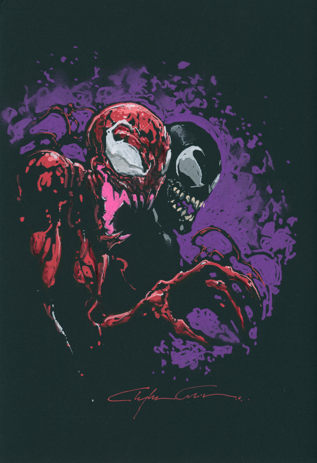 Symbiotes Venom & Carnage Sketch 7"X10" Black Mixed Media